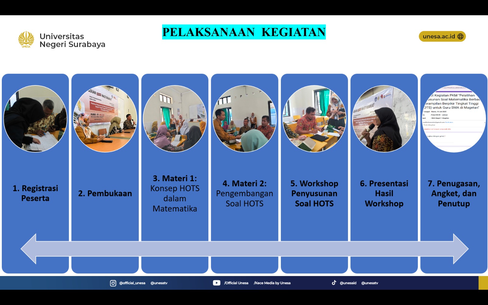 Pada hari Kamis, 10 Juli 2025, Program Studi S1 Pendidikan Matematika Universitas Negeri Surabaya (UNESA) Kampus 5 bekerja sama dengan MGMP Matematika SMA Kabupaten Magetan menyelenggarakan kegiatan Pengabdian kepada