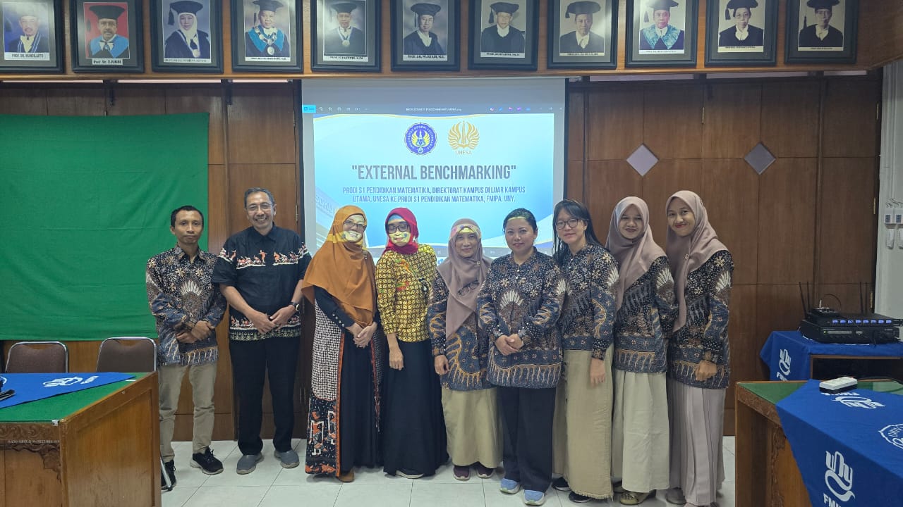 Yogyakarta, [14 Juni 2025] – Program Studi S1 Pendidikan Matematika Kampus UNESA 5 melaksanakan kegiatan benchmarking ke Program Studi S1 Pendidikan Matematika, Universitas Negeri Yogyakarta (UNY). Kegiatan ini bertujuan untuk memperkuat kualitas pengelolaan program studi, terutama dalam pengembangan kurikulum berbasis OBE, pelaksanaan Kerjasama dan publikasi, serta peningkatan mutu akademik dan tata kelola bidang kemahasiswaan.
